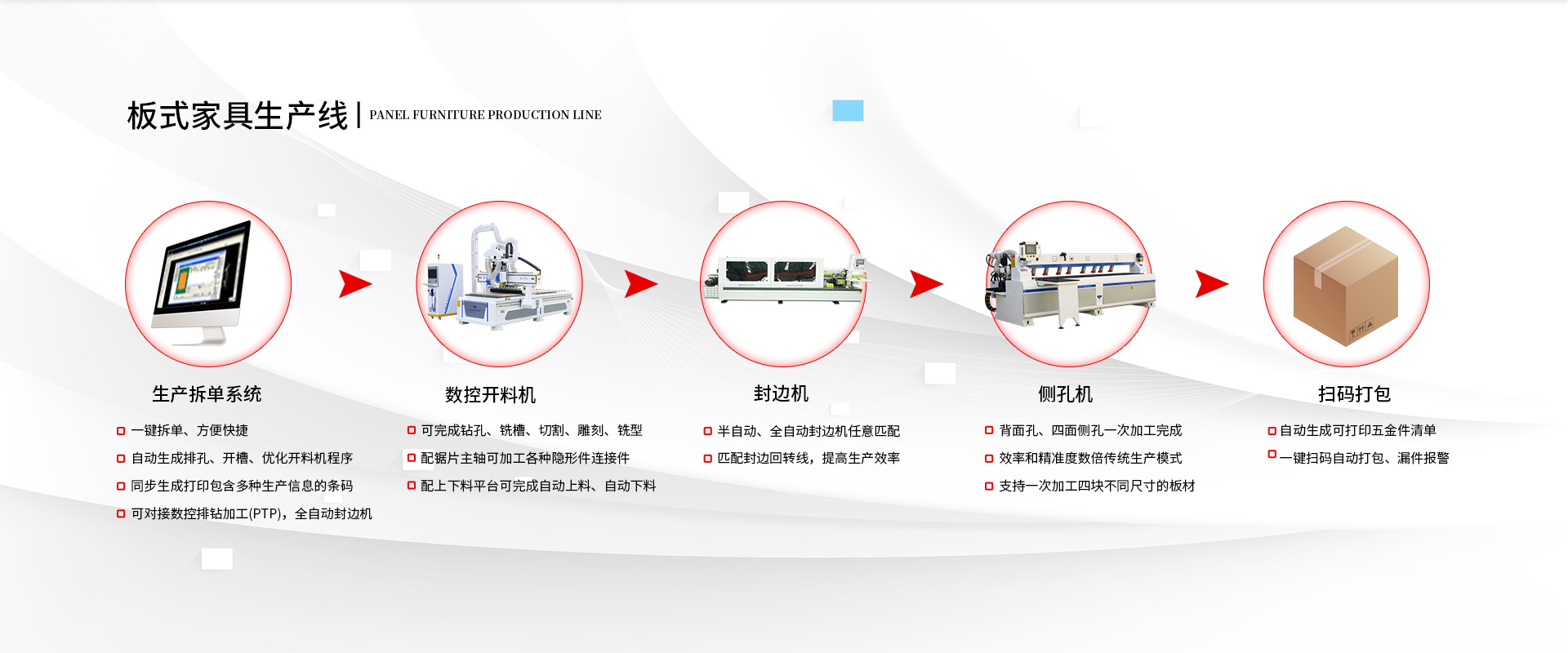 全自動(dòng)開料機(jī)作為數(shù)控智能化加工設(shè)備,在加工效率提升、加工質(zhì)量提高等方面做出了很大的改變,憑借這些優(yōu)勢(shì),在市場上深受廣大客戶的喜愛和歡迎... 閱讀詳情 >>板式家具廠要打造工業(yè)4.0的生產(chǎn)線,就要將開料、封邊、鉆孔、分揀、包裝等流程實(shí)現(xiàn)自動(dòng)化、流水化。 >>
